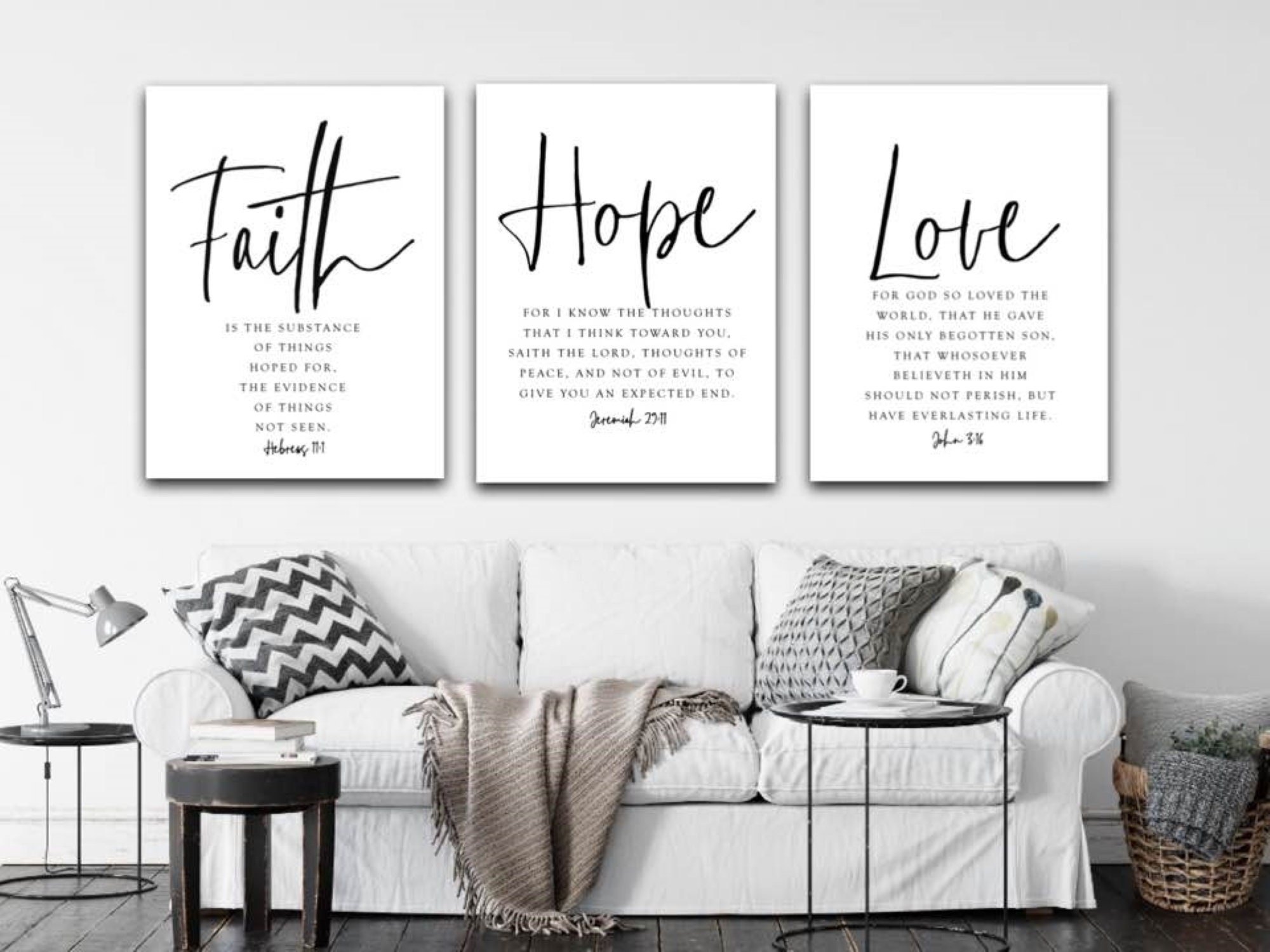 Kjv Bible Wall Art Set Of 3 Design Faith Hope Love Hebrews 11 Etsy
